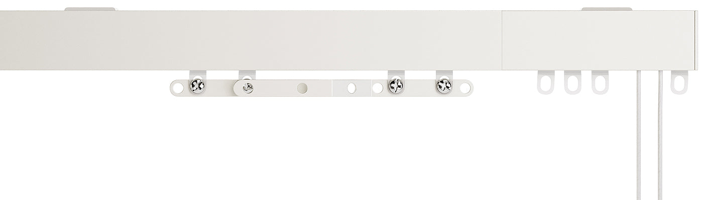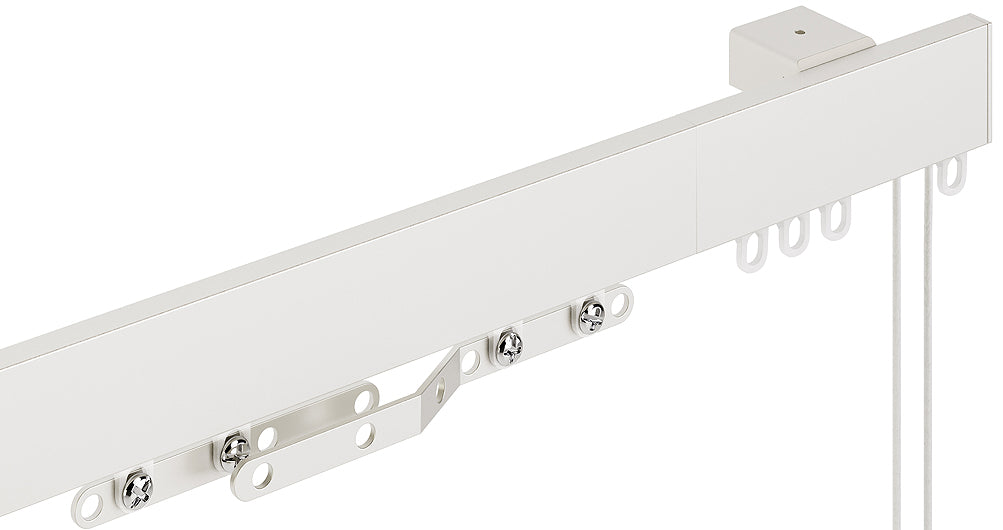 Speedy Contour Corded Aluminium Curtain Track in White. A powder coated, corded aluminium curtain track supplied complete with all fittings. The track can be hand bent to fit into a bay window but is not designed to reverse bend. The overlap arms allow the curtains to overlap in the middle of the window to prevent light gaps and adds more privacy to your room.