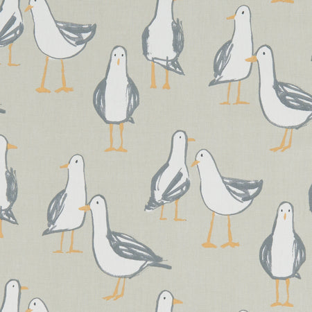 Studio G Land & Sea Laridae fabric in a Taupe colourway. Laridae is a printed panama cotton fabric with a Seagull design. The open heathland and sweeping coastline of Suffolk & Norfolk, influence this eclectic collection of 16 contemporary prints. Charming coastal scenes and marine motifs are accompanied by birdlife, hedgerow and nature inspired designs. These nostalgic designs are also available as PVC.
