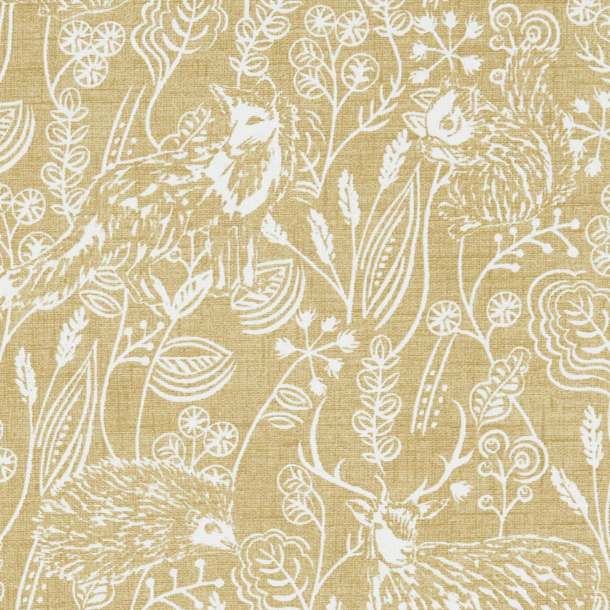 Studio G Land & Sea Westleton fabric in a Ochre colourway. Westleton is a printed panama cotton fabric with a woodland design. The open heathland and sweeping coastline of Suffolk & Norfolk, influence this eclectic collection of 16 contemporary prints. Charming coastal scenes and marine motifs are accompanied by birdlife, hedgerow and nature inspired designs. These nostalgic designs are also available as PVC.