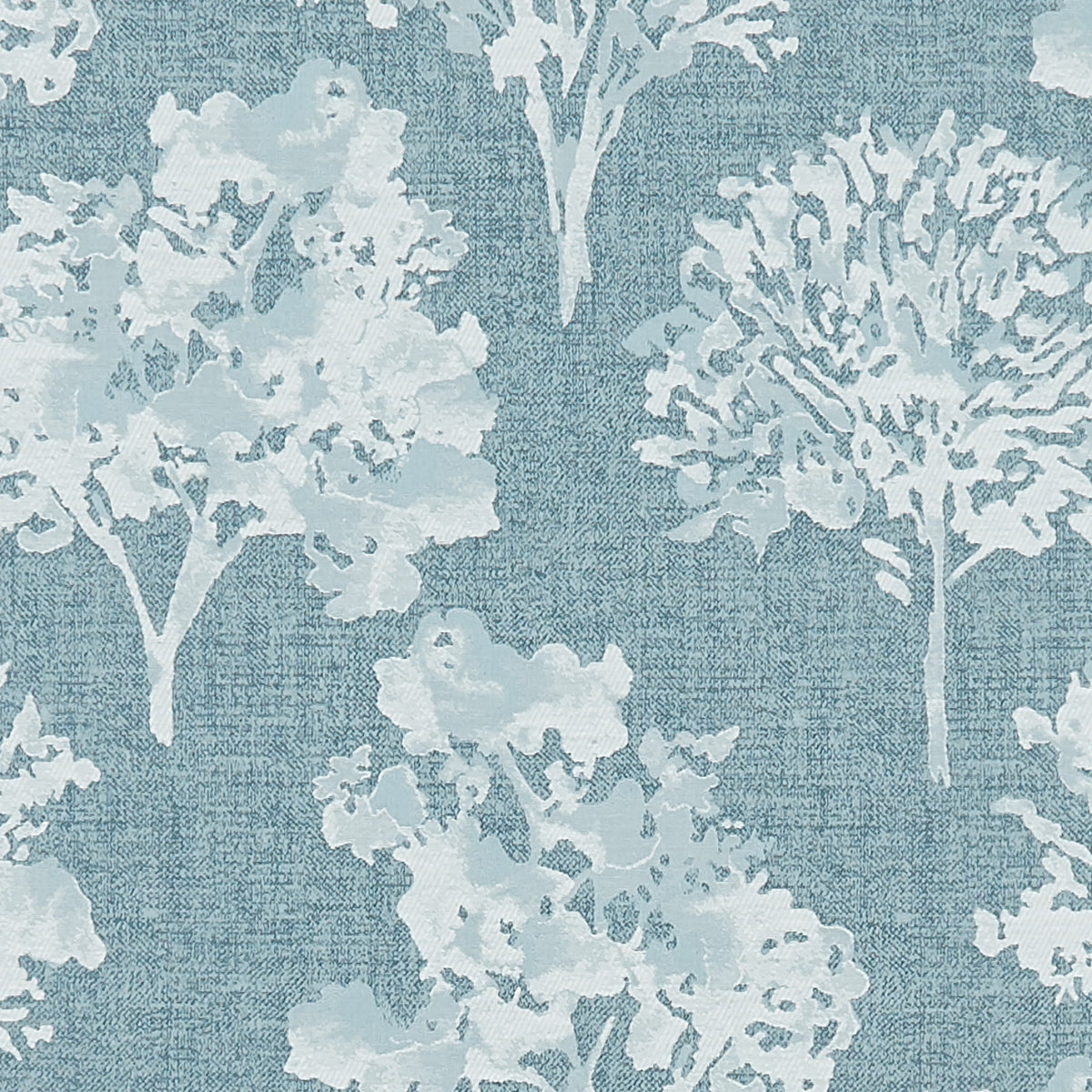 Studio G Sakura Acer fabric in a Teal colourway. Acer is a woven fabric with a forest tree design. Inspired by nature, this collection of leafy botanicals and statement tropical designs will be sure to bring creativity to any interior space. This eclectic collection of watercolour designs feature abstract florals, painterly textures and gentle geometrics, all digitally printed onto 100% brushed cotton, perfect for drapes and upholstery