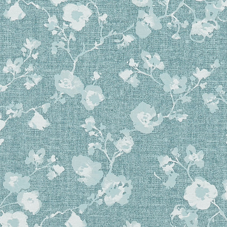 Studio G Sakura Sakura fabric in a Teal colourway. Sakura is a woven fabric with an abstract flower design. Inspired by nature, this collection of leafy botanicals and statement tropical designs will be sure to bring creativity to any interior space. This eclectic collection of watercolour designs feature abstract florals, painterly textures and gentle geometrics, all digitally printed onto 100% brushed cotton, perfect for drapes and upholstery