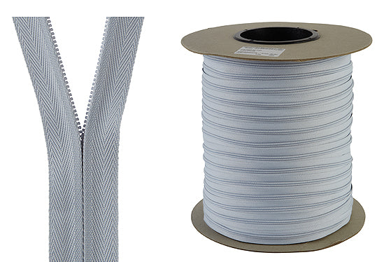 YKK No.3 Continuous Concealed Zipping,Grey. Lightweight nylon coil 3mm continuous concealed zipping, an economical solution for cut zips with minimal wastage. Specially designed, the coil on an invisible zipper is located on the back side of the zipper and will not be visible from the front after the zip has been installed. Invisible zipping size 3 is suitable for light to medium fabrics, used in cushions and soft furnishings, perfect when you don’t want the zip to show.